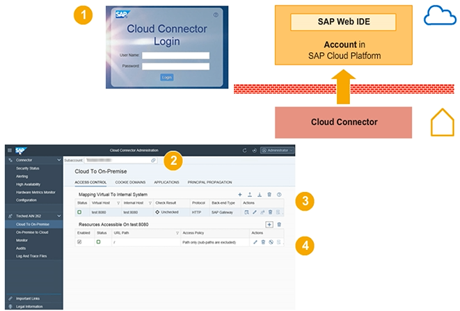 The Cloud Connector establishes a secure SSL VPN connection between the SAP Cloud Platform and on-premises systems. The connectivity is technically created by an on-premises agent through a reverse-invoke process. The Cloud Connector offers a pre-configured destination APT and certificate inspection to safeguard against forgeries.