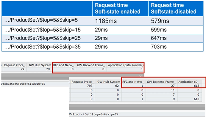 The soft state based query result cache (SQRC) on the hub caches (on request) the result of a READ_ENTITYSET request and applies paging on the result list. Consecutive paging requests for the same query result will then be served from that cache.