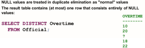 If a projection list contains multiple columns, DISTINCT always refers to the combination of all these columns.
