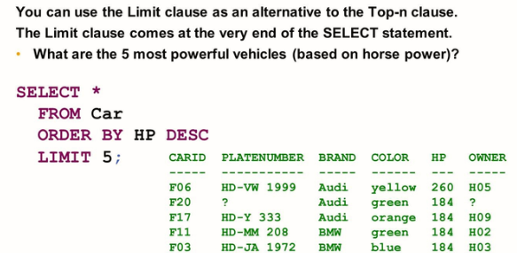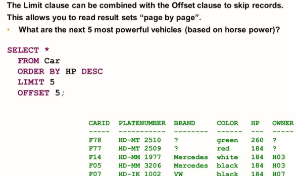 The LIMIT and OFFSET clause