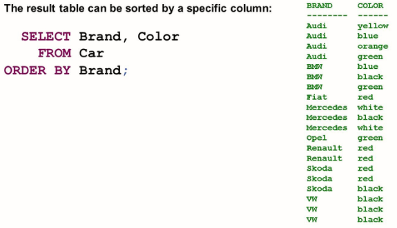 The ORDER BY clause
