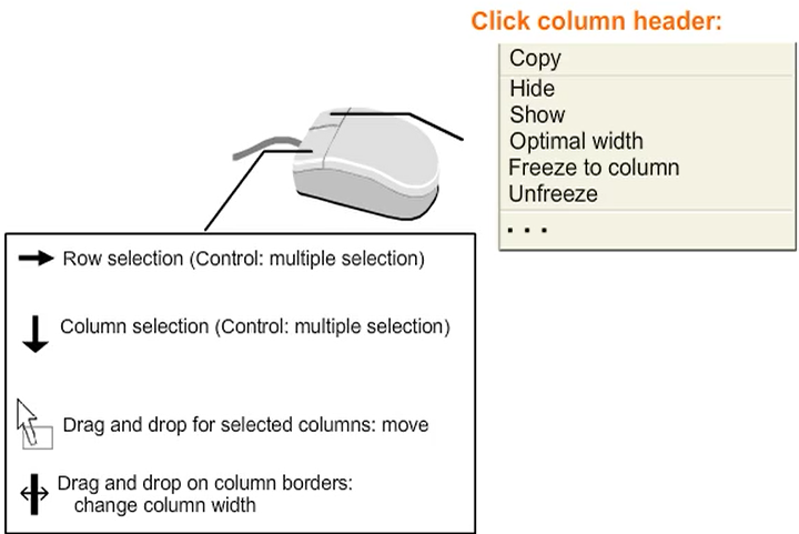 You can define a selected column as the last fixed column. When you scroll across the screen, the columns to the right of the selected column are scrolled through. It is useful when you have a wide list in which not all columns can be displayed on the screen. You can still see the important columns all the time.