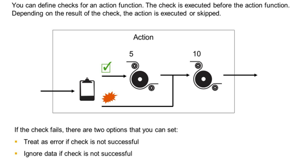 In addition to the Stop Processing on Error checkbox on action function level, a Stop Processing on Error checkbox can also be selected in the Assign Actions activity of the Define Structure Mappings in AIF Customizing. Here, the checkbox behaves a bit differently.