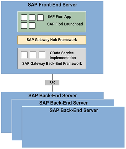 When developing SAP Gateway in the back end, Gateway server functionality is only used on one dedicated server, the hub system. The services are deployed on the back-end systems and are registered on the server.