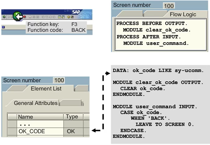 The automatic field transport at the beginning of PAI ensures that the function code is available in this selected field for processing. It can be evaluated using ABAP code within the PAI module of the flow logic.