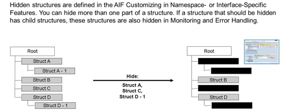 Where to customize: AIF Customizing → Error Handling → Interface-Specific Features → Hide Structures.