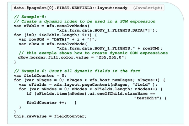 Example 6 is challenging. It shows how to access or count all dynamic fields inside a form and uses nested FOR statements.