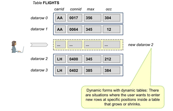 The user can change the number of rows in tables. To achieve this, always use dynamic forms.