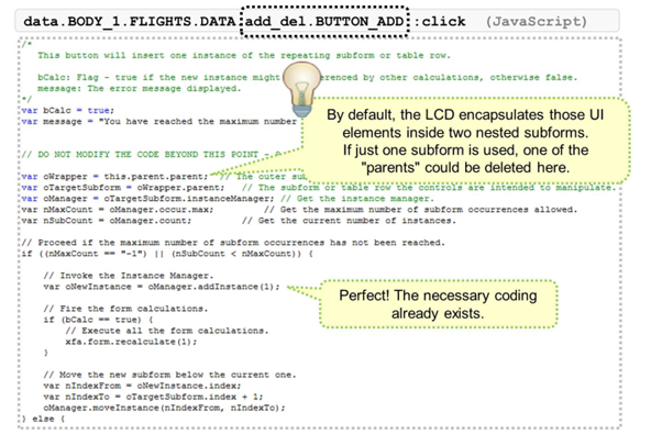 If the predefined UI elements (those four arrows) are used to add, delete, and move rows, the LCD automatically generates the necessary scripting.