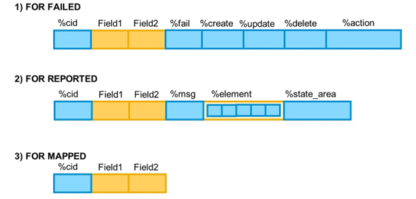 These types contain the key fields of the related entity plus some generic fields for the details. As usual, the additional fields start with % to avoid naming conflicts.