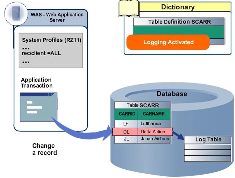 You can use logging to record and store changes to the entries of a table. To activate logging, select the