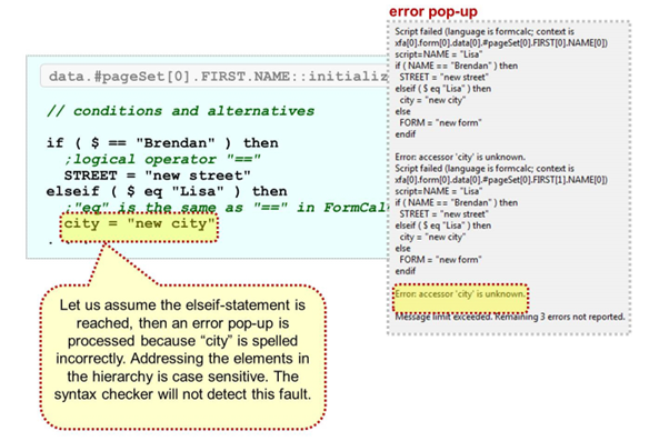The figure above shows one of the most common mistakes in scripting. ABAP developers, especially, need some time adapt to the case sensitivity of field names.