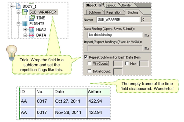 With this trick, empty fields in the layout can be suppressed without the need to code scripting. The result is that form processing will run faster.