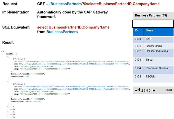 $select is used to limit the result set for a consumer application by limiting the number of columns that are retrieved by the consumer. Here we only want to retrieve the business partner ID and the name of a business partner.