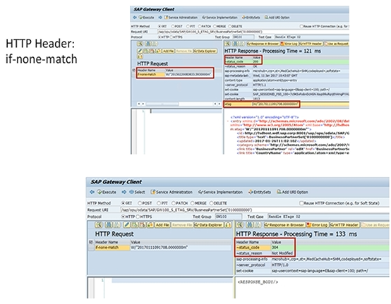 If the ETag sent by the client does not match, this indicates that the resource has changed. The client then receives the changed data in the HTTP response. If the ETag matches, this indicates that the data has not changed and the client can work with the data that is locally available.