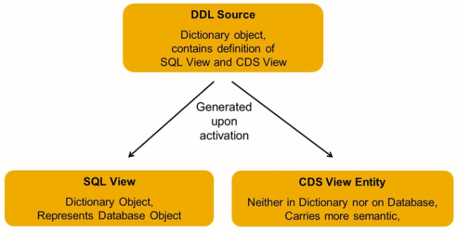 Upon activation of a DDL source, two objects are created: the SQL view and the CDS view. Neither of them can be edited directly.