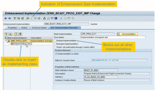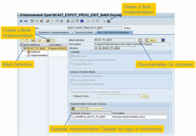 The figure shows you an enhancement spot implementation with a new BADI implementation.