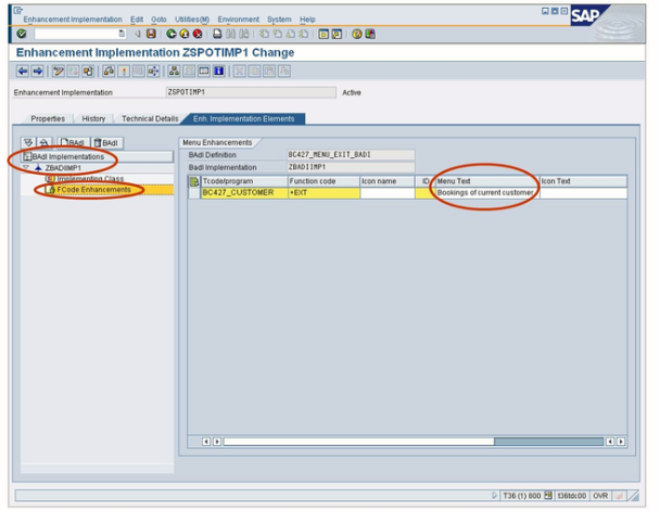 When a customer implements a BADI of this type, they do not just specify the text for the additional menu option. They must also implement the BADI program exit with the coding that will be executed when the user chooses the menu entry. When the BADI menu exit is implemented, the entry in the SAP screen menu is activated and will be visible. If the user chooses the menu entry, the custom logic is processed.