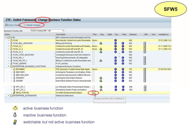 To activate or deactivate business function, make sure that you have switched to change mode.