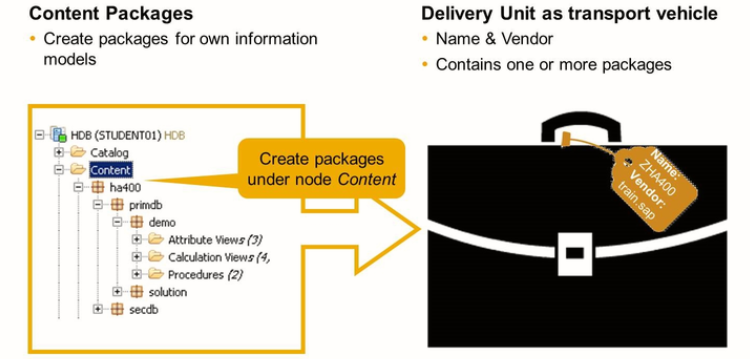 To transport SAP HANA content, packages are assigned to delivery units. Each package may be assigned to one delivery unit only.
