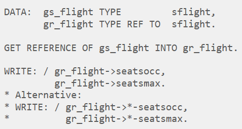 Use the dereferencing operator ->* to dereference statically-typed data objects directly. This means that the dereferencing operator directly accesses the content of the data object that the reference is pointing to. For compatibility reasons, you must dereference generically typed data references (TYPE REF TO data) and assign them to a field symbol, which you then use to access the content.