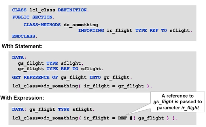 Use the TYPE REF TO addition for the TYPES statement to define a reference type for a data object. You can specify the data type explicitly or choose the generic variation by using TYPE REF TO DATA . In this case, your data reference can point to any type of data object.