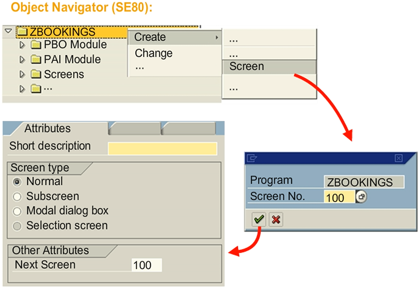 To create a screen from the Object Navigator (transaction code SE80), proceed as follows: