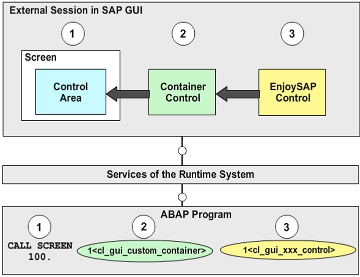 The container control is responsible for integrating the presentation server controls with normal screen processing (PBO, PAI, and resize behavior).
