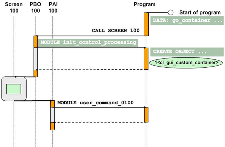Every GUI control has a representative instance in the ABAP program, therefore the program communicates with two ABAP instances and a minimum of one dynpro. In all, four instances are generated, two in the ABAP program and two at the presentation server.