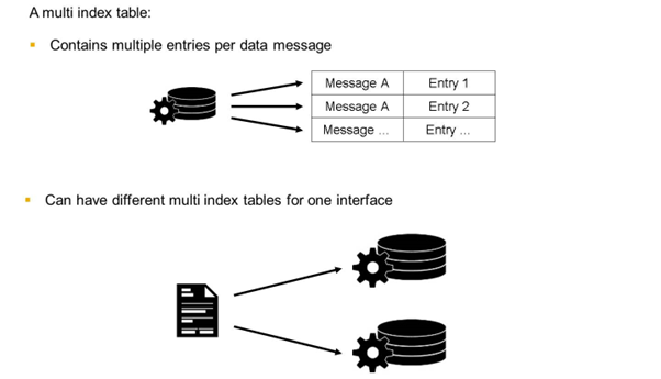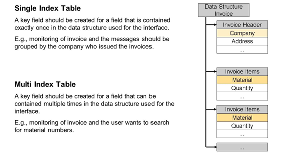 A multi index table is required if the defined key field is part of a table. The key fields defined in a multi index table are not used for grouping in Monitoring and Error Handling.