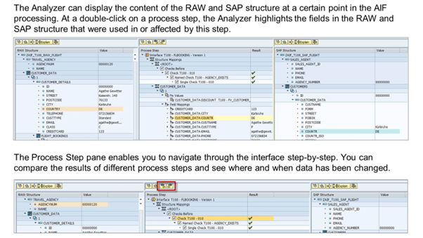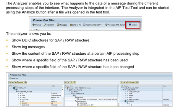 The AIF test tool has an additional feature to see what happened during the processing of the interface, the AIF Analyzer.