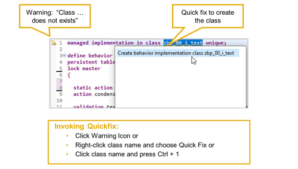 You specify a behavior pool for the RAP business object by adding implementation in class unique to the behavior definition header (statement managed or unmanaged). The mandatory addition unique defines that each operation can be implemented exactly once.