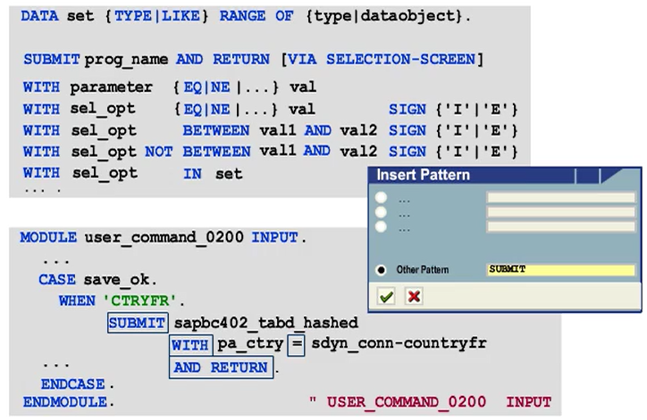 Note: For more information, see the ABAP keyword documentation for the SUBMIT statement.