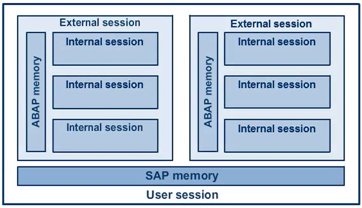 When a program calls external modularization units, the system loads the corresponding programs into the same internal session. The programs within an internal session form program groups. When the system opens an internal session with a program call, the system always creates the main program group. There can be one or more additional program groups. Each program group contains one main program, and possibly other programs as well.