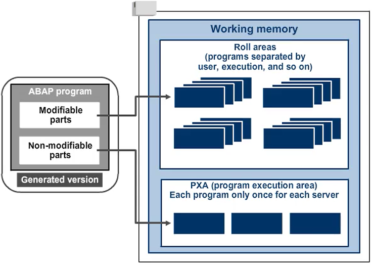 When the runtime system generates a new runtime object (the LOAD) of a program or loads it from the database, it places the program in the working memory of the application server. In the process, the runtime system treats the modifiable parts of the program differently than the non-modifiable parts.