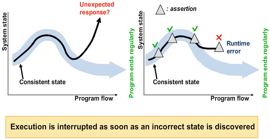 Assertions help you check whether the program flow is progressing the way that is intended. The program reacts if its results, or interim results, lie outside of a range of expected values.
