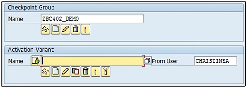 Checkpoint groups represent a new type of Repository object. They can be created in the Object Navigator, or in transaction SAAB (be sure to observe the naming convention).