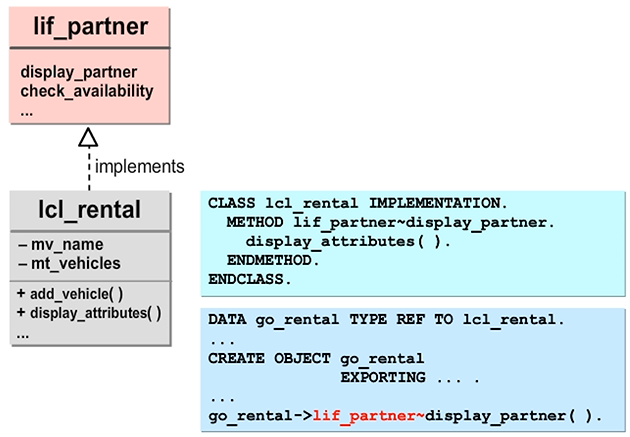 In ABAP Objects, the same components can generally be defined in interfaces and classes. To recognize the semantic differences from regular inheritance, you can concentrate on the following use cases.