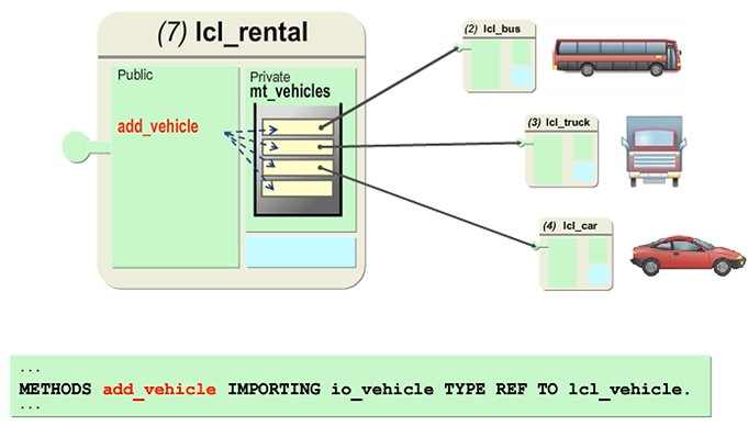 The dynamic type of the reference variable is used to search for the implementation of a method. In the above example, lo_partner->display_partner( ) uses the class of the instance to which lo_partner actually refers in order to search for the implementation of display_partner.