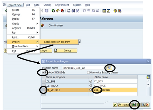 Hint: The function to copy local classes to global classes cannot be used from within OBJECT-NAVIGATOR.