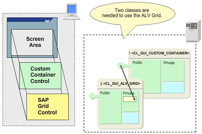Container Controls provide the technical connection between the screen and application controls. The application controls ALV Grid Control, Tree Control, and Picture Control are always embedded in the Container Control, which is connected to the screen.