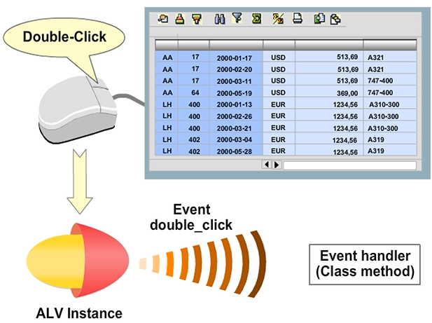 An ALV Grid Control can react to the user’s double-click. As a possible reaction, you can trigger a follow-on processing step in which additional information is displayed.