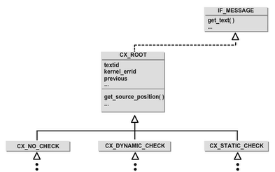 However, a new exception class is not allowed to inherit directly from CX_ROOT, derive any new exception class directly or indirectly from one of the subclasses CX_ROOT - CX_NO_CHECK, CX_DYNAMIC_CHECK, or CX_STATIC_CHECK.