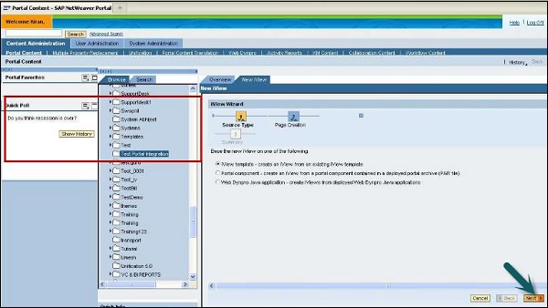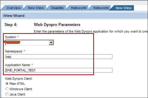 Step 11 − Enter iView name, iView ID, iView prefix ID and click Next. Enter definition type as ABAP and click Next.