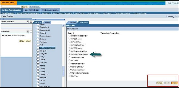 Step 10 − Select SAP Web Dynpro iView as template and click Next.