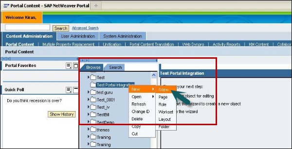 Step 5 − Go to Portal Content → Content Administration tab.