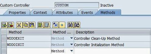 Unlike component controller, the custom controller does not contain a no of hook up methods. We can create our own methods in the custom controller and these methods can be used by any views provided that the custom controller is added to the used controller in the properties tab of the view.