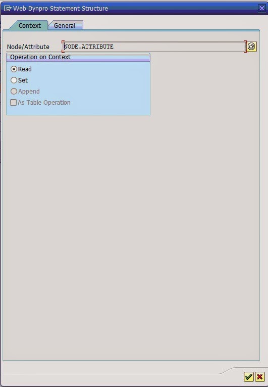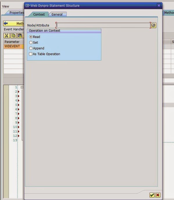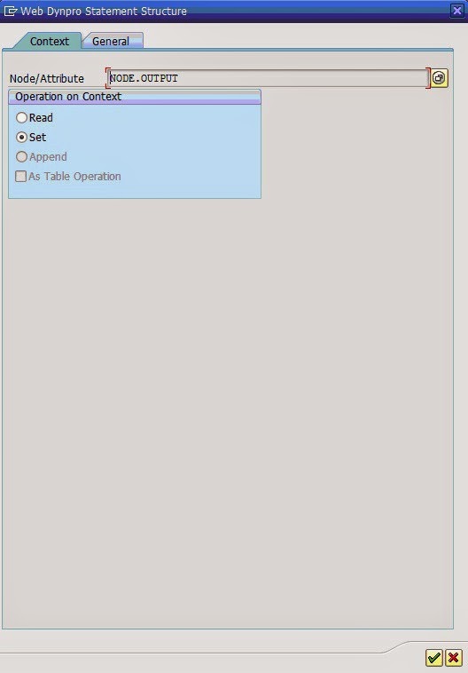 Using the code wizard, choose the context operation as set and set the attribute “OUTPUT”.