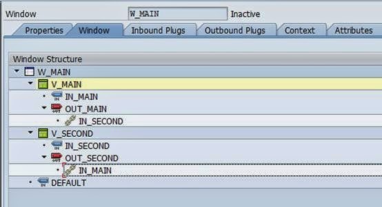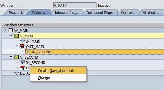 Now you will see the navigation link is formed between the views indicated by a chain symbol. Now when ever the outbound plug out_main is triggered the system will navigate from the first view to the second view. Similarly, create the path from the second view to the first view.