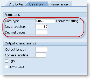 - Enter the number of characters. Enter the decimal places if it applicable to data type that you have selected. Save and activate the domain.